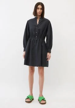 Marc O’Polo Damen STYLE, FITTED WAIST, DETAILS, SHORT LENGTH – Blusenkleid – Deep Blue Sea